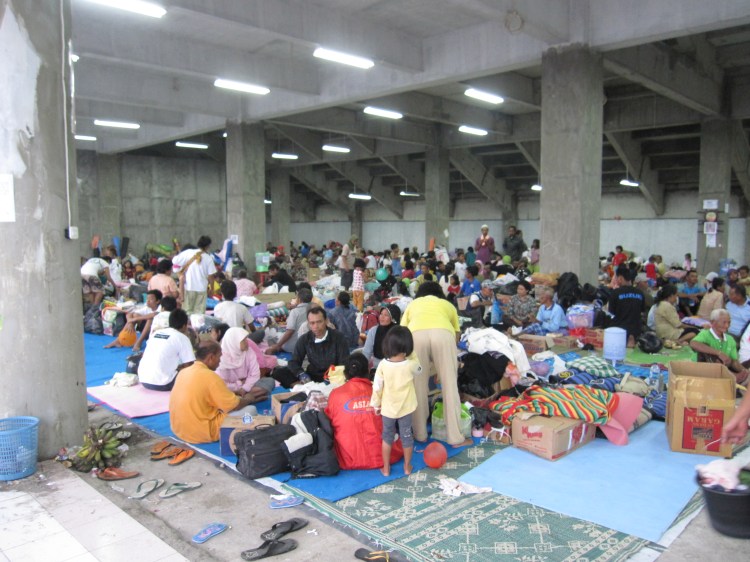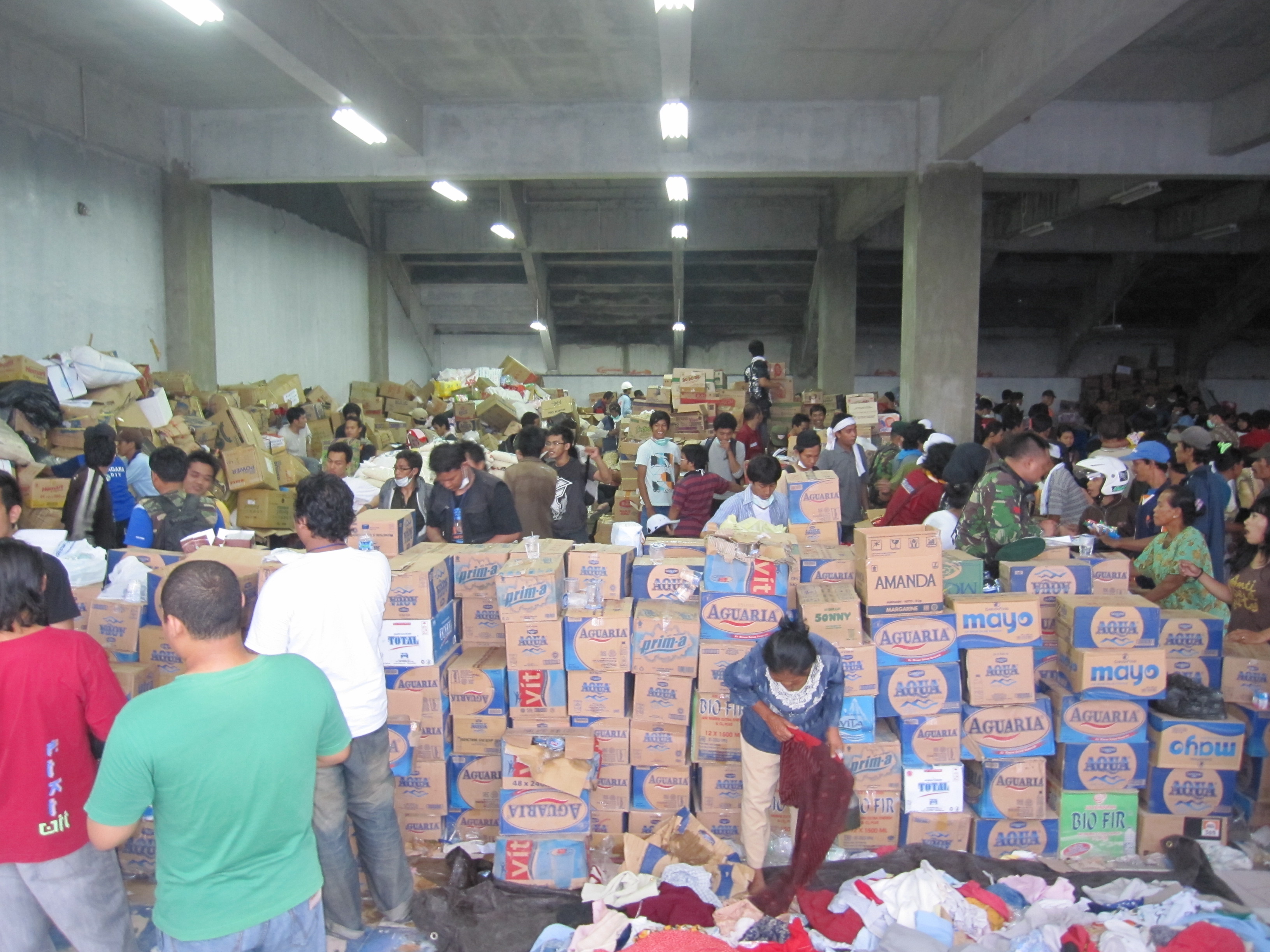 Stadion Maguwoharjo adalah lokasi pengungsian terbesar korban letusan Gunung Meraapi di daerah Yogyakarta, stadion yang biasanya dipakai oleh PSS Sleman untuk bertanding dibanjiri oleh puluhan ribu pengungsi. Bantuanpun nampaknya terkonsentrasi disini, dibagian penerimaan logistik tak henti-hentinya para relawan menurunkan barang yang di drop dari mobil para donatur yang menyumbangkan bantuan bermacam-macam rupa kepada pengungsi seperti air mineral, beras, snack, pakaian baru dan bekas, mi instant, dan lain-lain.