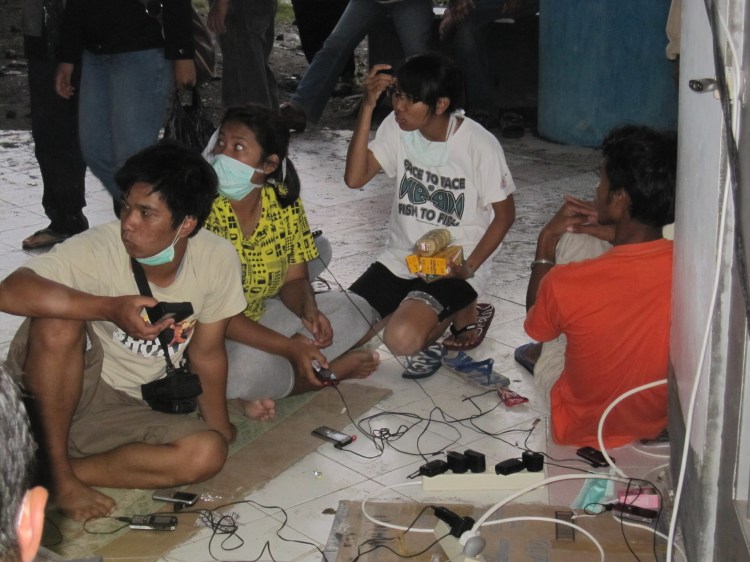 Sementara itu, PLN mendirikan Posko Bencana yang selain bertanggung jawab mengenai kecukupan pasokan listrik dari feeder yang menyuplai stadion dan lokasi pengungsian lain, menyediakan Genset dan juga menyediakan cas gratis HP, deretan stop kontak yang berjumlah 50-an dipenuhi oleh para pengungsi yang menunggui HP sambil sms-an dan menelpon. Kata Pak Furqan, manajer PLN APJ Jogja, para pengungsi tentu membutuhkan baterainya terisi penuh agar dapat berkomunikasi dengan keluarganya dan dapat saling bertukar kabar, disamping itu PLN juga menyediakan dispenser bagi yang juga setiap saat didatangi pengungsi untuk menyeduh teh atau mi instant. Dibagian lain Bakrie juga mendirikan tenda terpisah di luar stadion, yang menyediakan fasilitas kesehatan gratis danmembagikan baju kaos bertulis Bakrie untuk negeri. Posko Bakrie ini nampak mandiri dibanding Posko lain karena juga menyediakan genset sendiri untuk dipakai di malam hari. Partai-partai juga banyak yang berseliweran mobilnya, beberapa mobil bergambar bu mega dengan relawannya berbaju banteng kepala miring juga nampak di lokasi, beberapa mobil partai matahari juga terlihat sebelum masuk stadion.