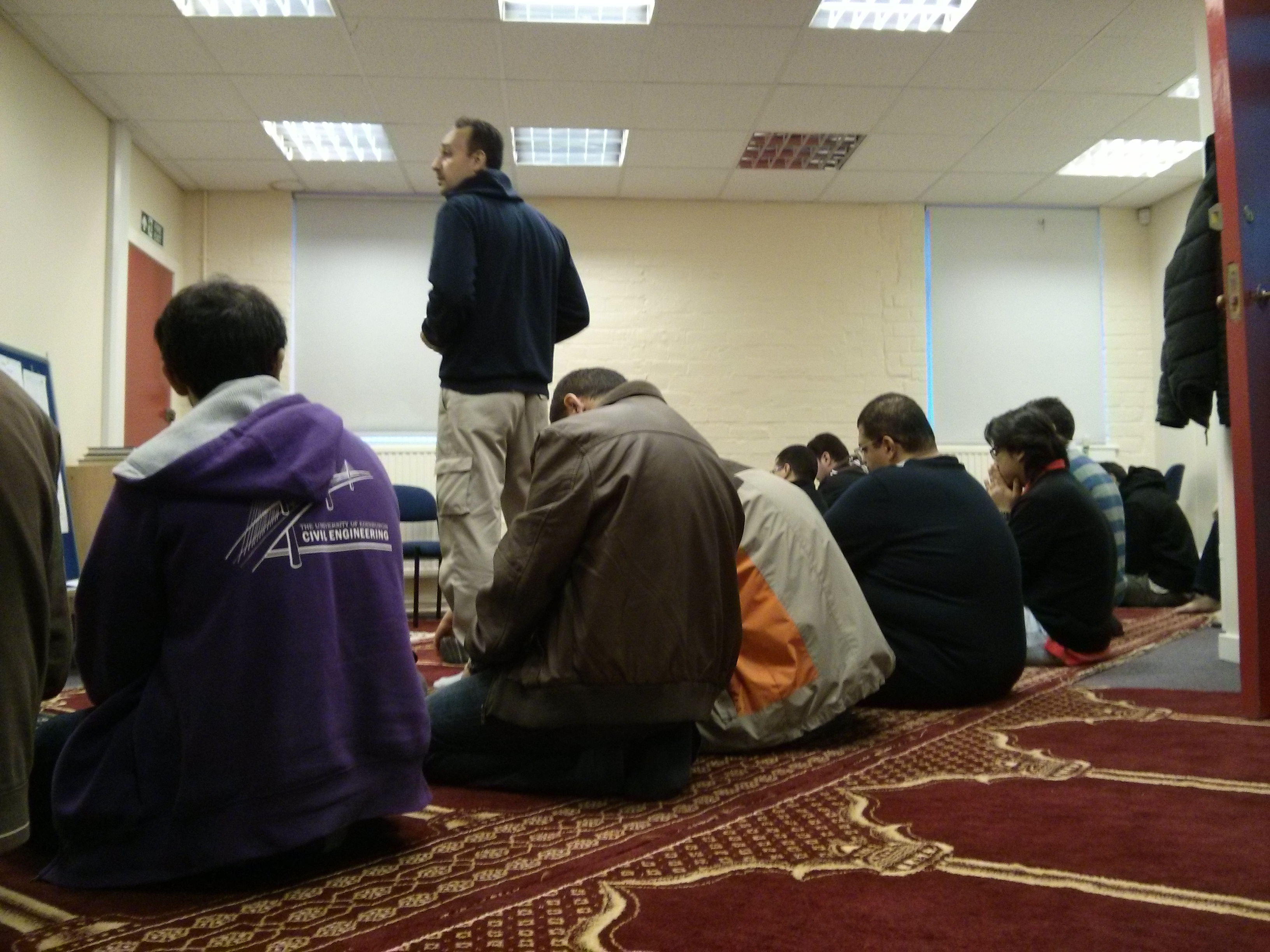 Lokasi shalat bagi muslim di Edinburgh tidaklah sulit didapatkan, khususnya bagi mahasiswa. Ada Central Mosque yang merupakan mesjid besar di Poterrow beedekatan dengan University of Edinbugh di Central Area. Kapasitasnya bisa mencapai 1000 orang dan ada balkonnya buat jamaah wanita.Mesjid ini dibiayai oleh Raja Saudi Arabia waktu itu Raja Fahd. Ada juga mesjid di Roxburgh, cuma saya tak pernah kesana jadi tak bisa cerita.